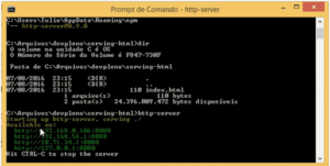 npm install -g http-serverEle vai instalar o HTTP server, que é mais ou menos parecido com o APACHE, porém mais simples porque podemos servir qualquer pasta, geralmente de forma temporária e não startado como serviço.