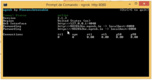 ngrok http 80808080 representa a porta que estamos utilizando. Com isso, ele libera dois endereços, um https e um http, abrindo um túnel pela internet.