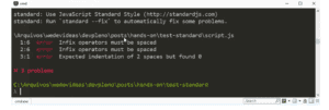 npm install -g snazzySe rodarmos Standard no nosso código, percebemos que é bem difícil de entender ou achar onde está o problema, então se fizermos: